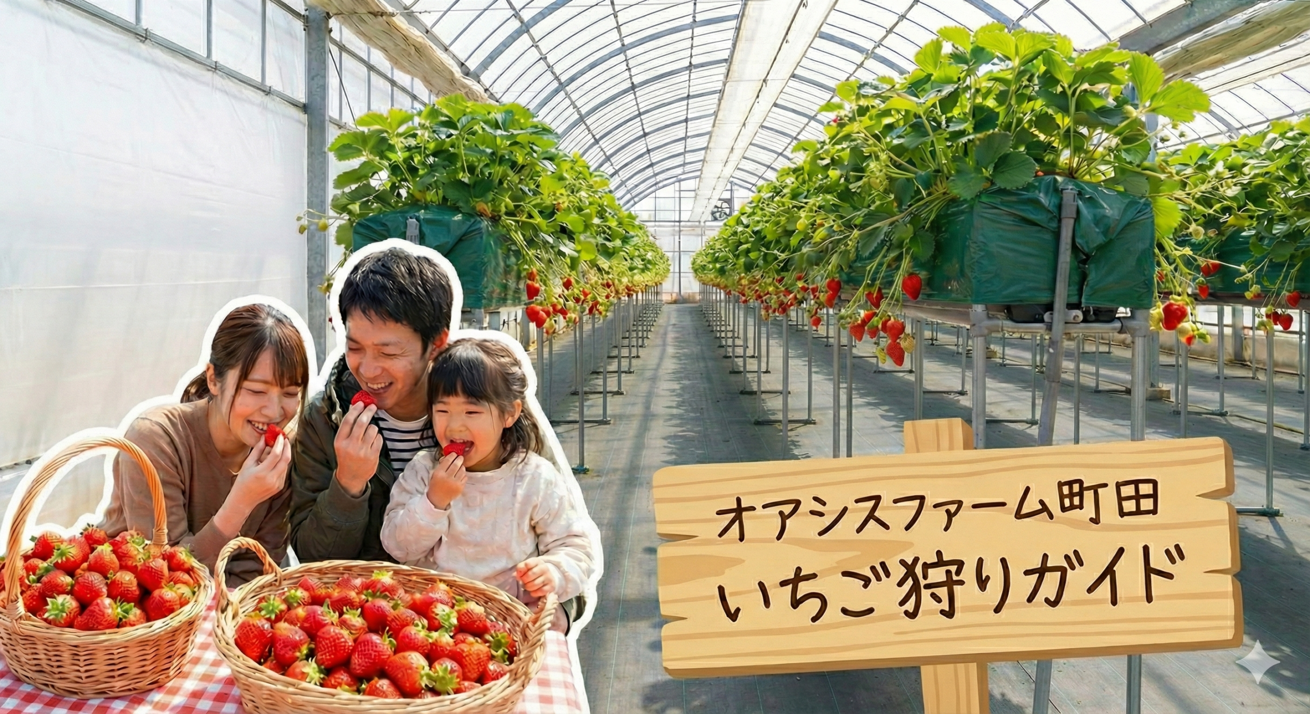 町田の静かな住宅街の先に広がる、いちごの楽園「オアシスファーム町田」へようこそ。 当園では、一般のスーパーでは決して味わうことができない「10割完熟」のいちごを、お客様ご自身の手で摘み取って楽しんでいただけます。